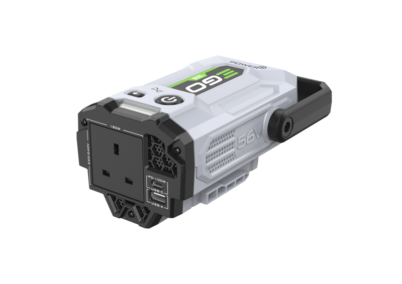 La presa di corrente CA da 220-240 V 180 W e le 2 porte USB di EGO Power+ Nexus Escape consentono di caricare o alimentare i dispositivi ovunque tu sia.